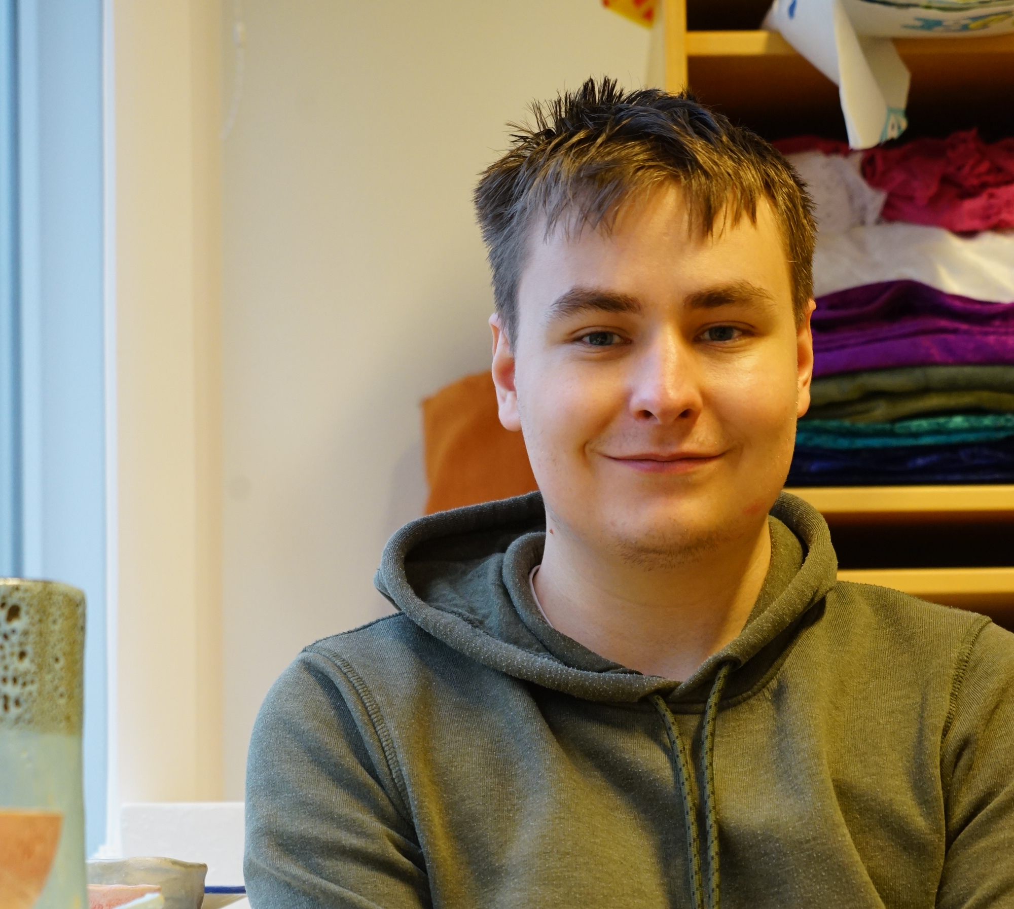 "Jeg kan godt lide at male, tegne og arbejde med ler. ’Kunst og design’ en god blanding af undervisning og mulighed for at arbejde individuelt. Det er dejligt, at jeg kan arbejde med mine egne projekter samtidig med, at de andre elever arbejder med deres – og så er roen i kunstlokalet rar for mig".